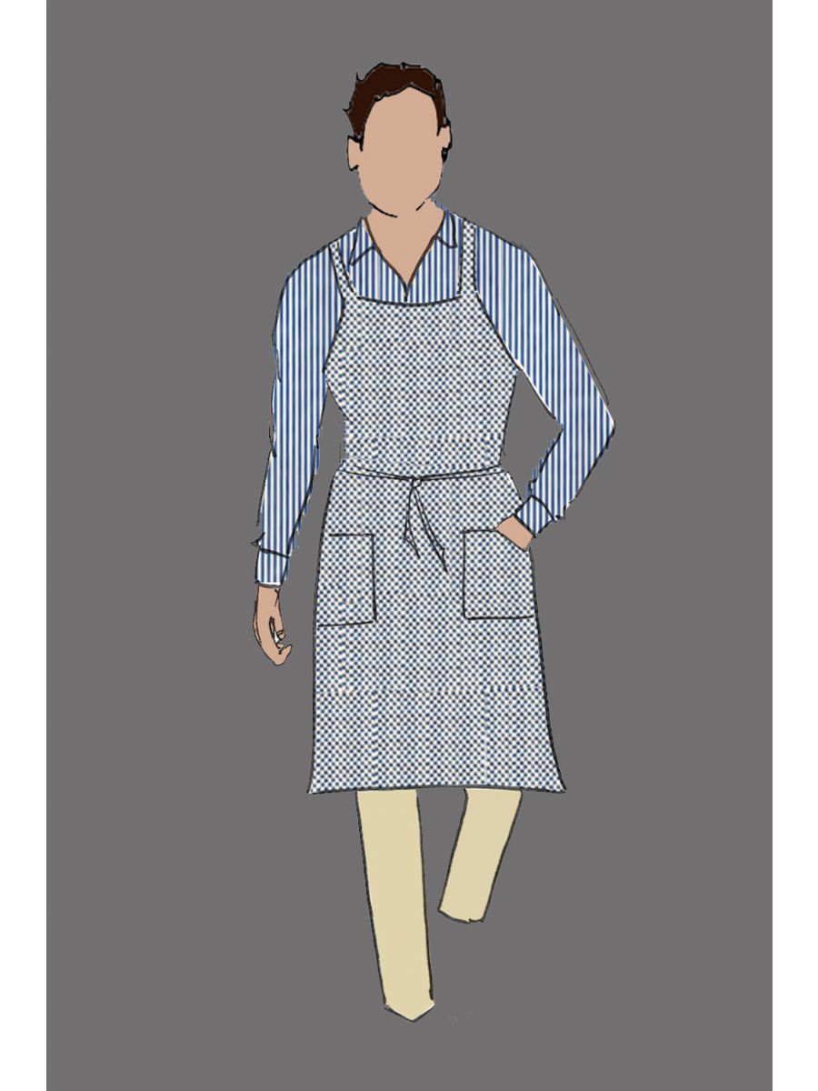 208142 - Uniform Apron Blue/White Nailhead Full Apron